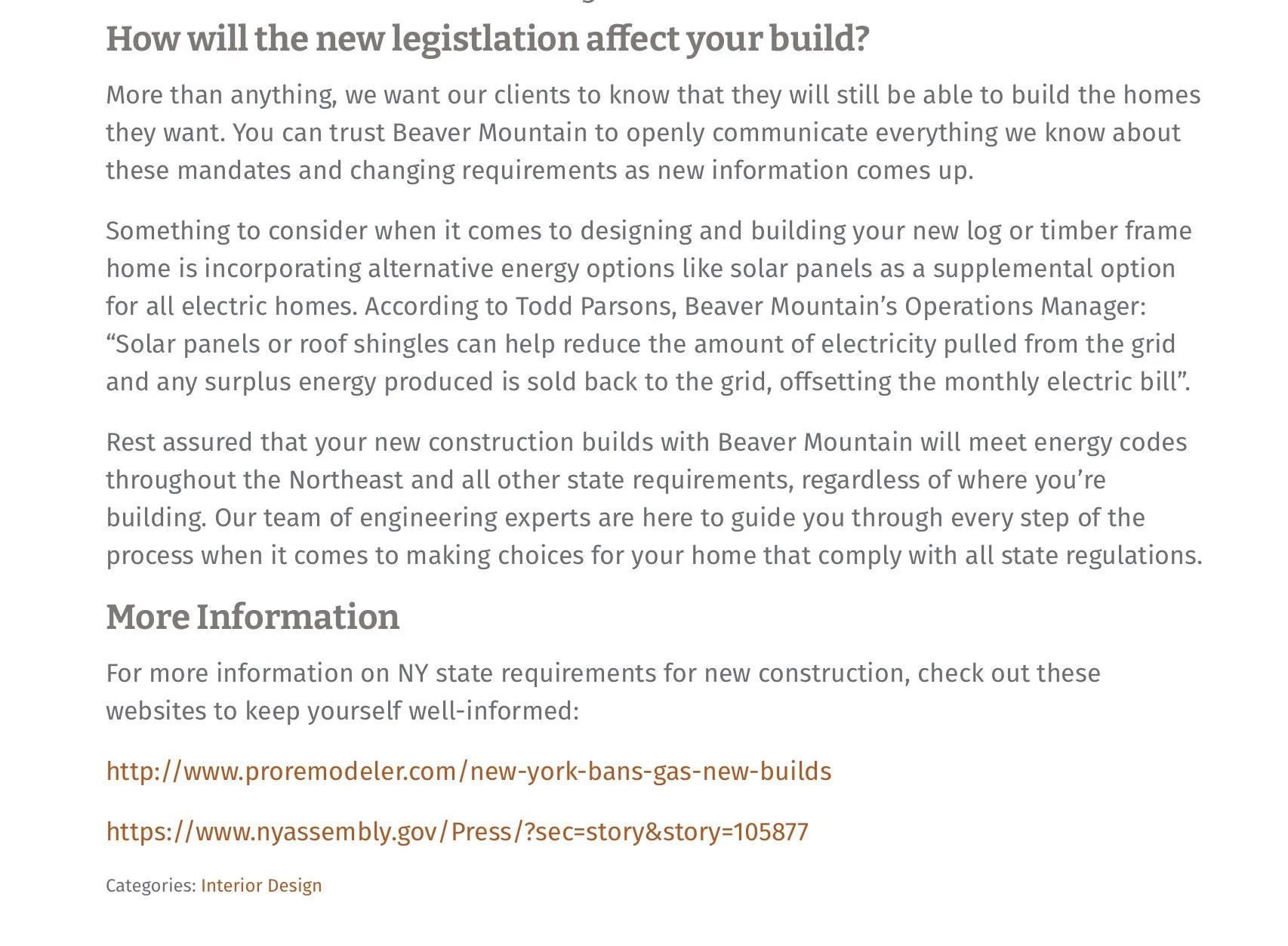 Objective: Research the recent bans on gas hookups announced by NYS, and convey information in a concise, neutral, and factual way that audience will understand. Explain how that information will affect their home design plans and future building projects.