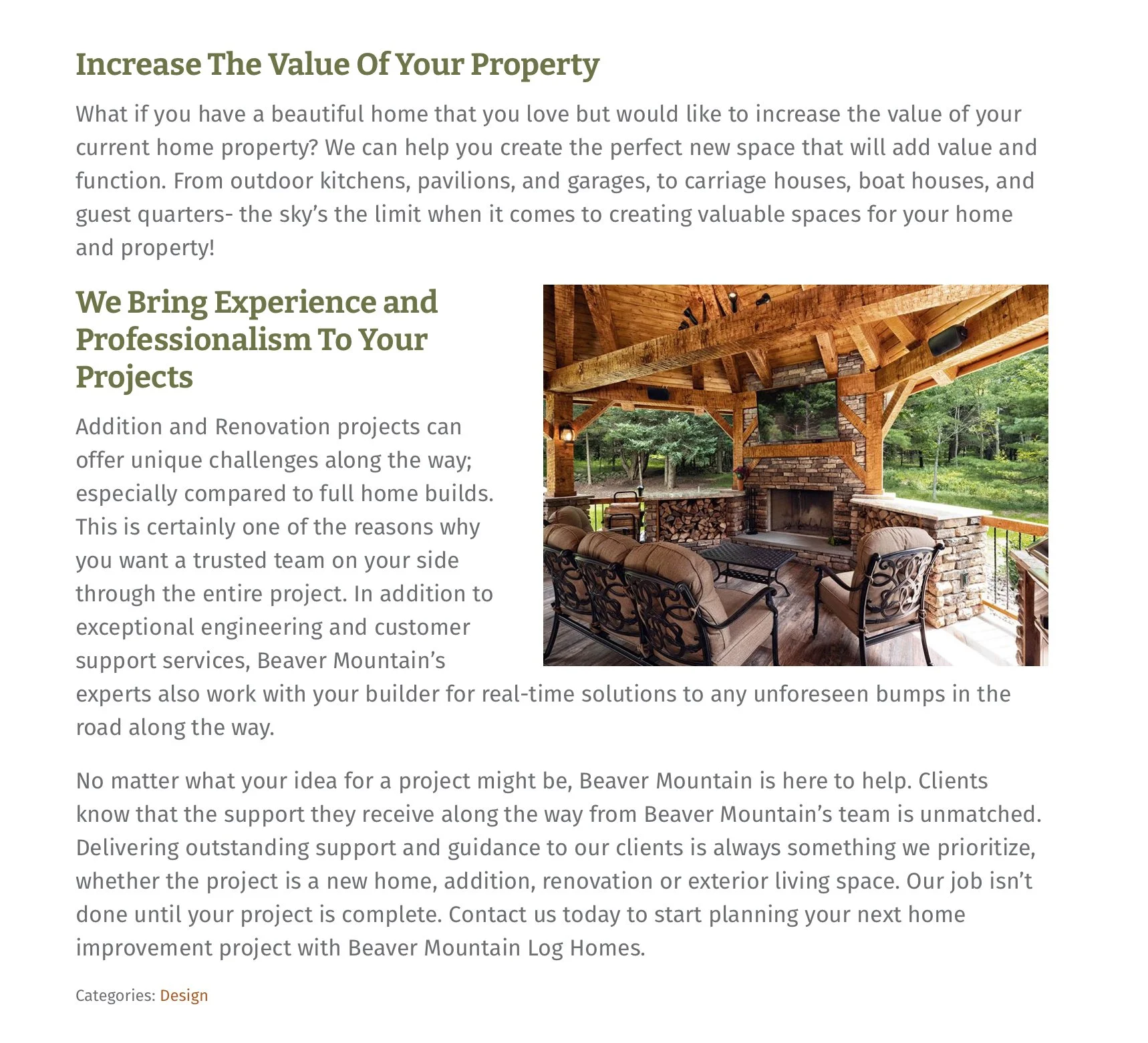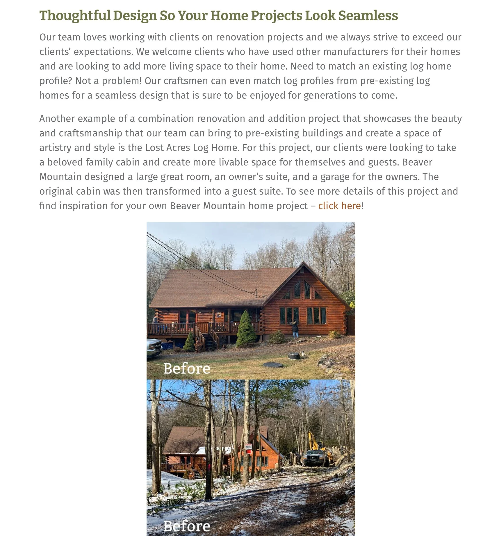**screenshots taken with client’s permission. All images are courtesy of Beaver Mountain Log & Cedar Homes.